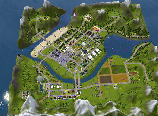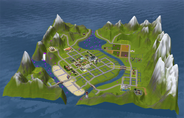 Eine echte Stadt mit Strand, einer kleinen Insel und einer Lebendigen Metropole! Auch hier hast du über 120 Grundstücke zum Spielen und Bauen! |